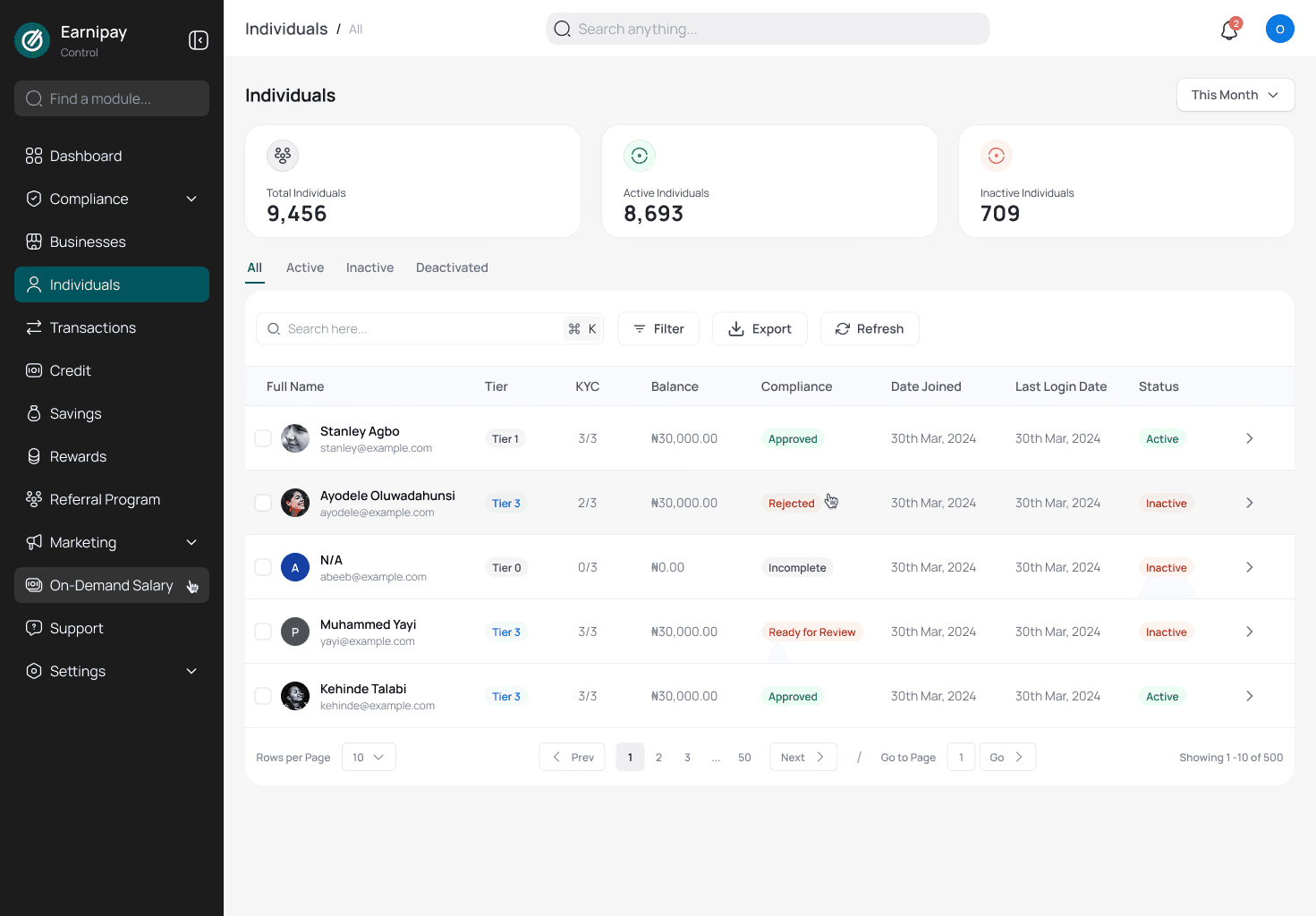 Earnipay’s business portal and back-office app power everything from compliance checks to transaction management and savings oversight. But internal teams found the existing tools confusing: data was scattered, screens felt cluttered, and everyday tasks took far too long.
